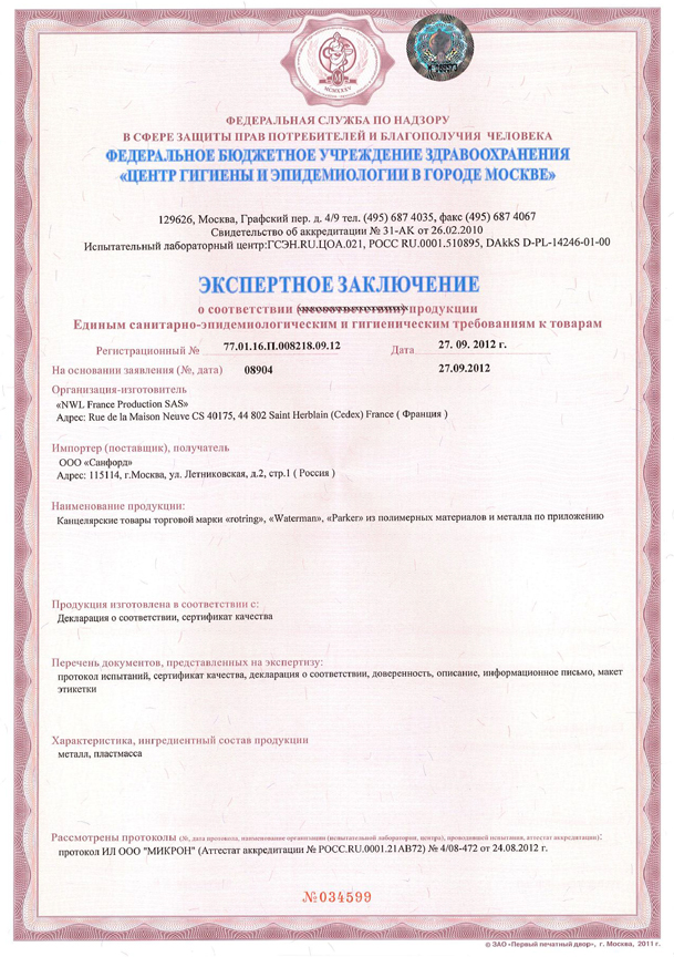 Сертификаты - Официальный дилер PARKER в Щелкове